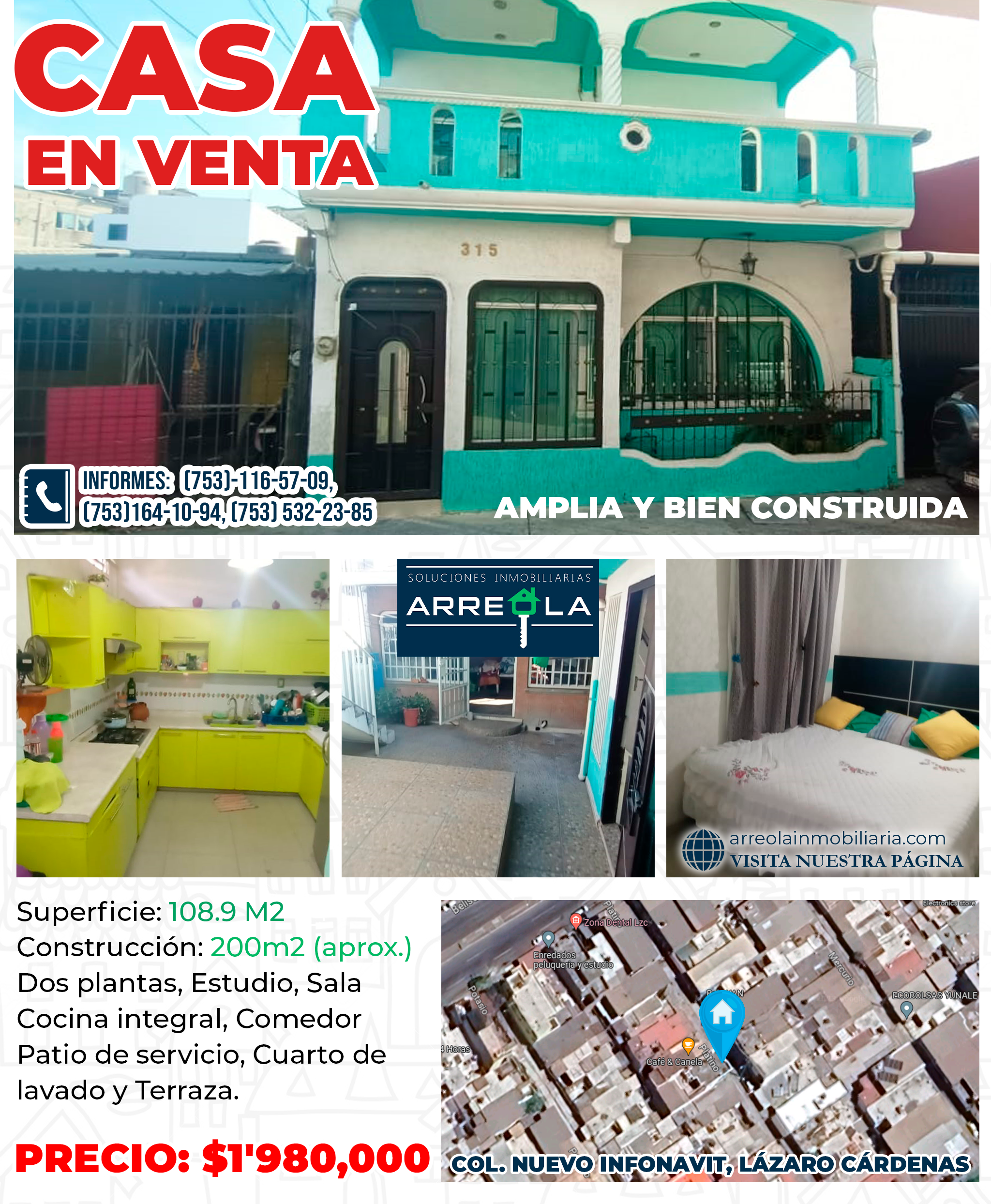 AMPLIA Y BIEN CONSTRUIDA. CASA EN VENTA. COL. NUEVO INFONAVIT, LÁZARO CÁRDENAS, MICHOACÁN.