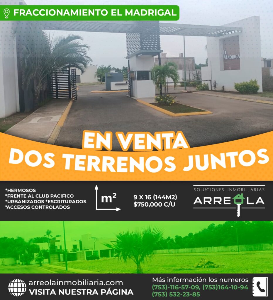 VENTA. 2 TERRENOS JUNTOS. FRACC. EL MADRIGAL. LÀZARO CÀRDENAS, MICH.