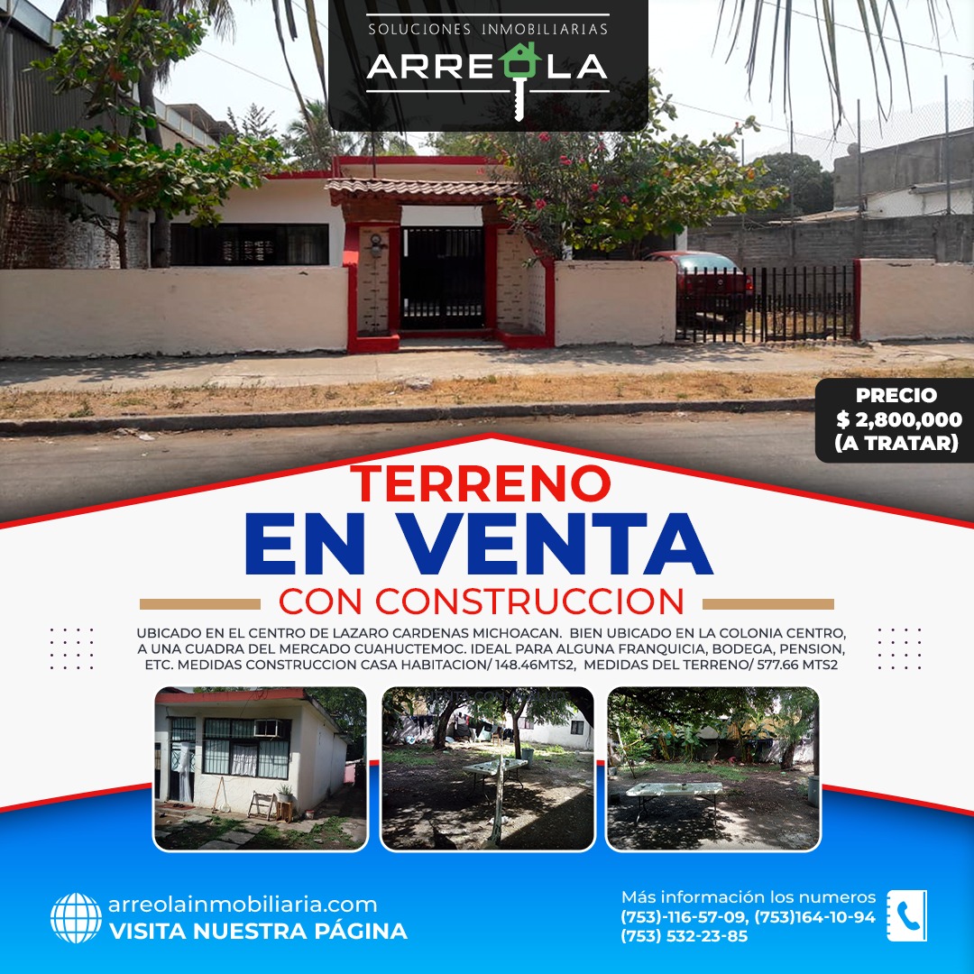 Terreno en Venta con construcción. Centro Làzaro Càrdenas, Mich.
